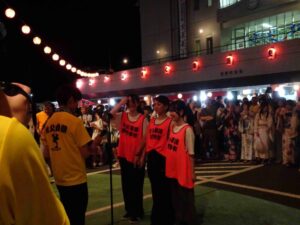 8月14日、皆野町で開催された秩父音頭まつりに、1・2・3年生全員で参加しました。昨年、秩父音頭保存会長賞をいただいた3年生が中心となり、1年生と2年生に踊りの指導をしてくれました。夏休み中も学校に登校して猛特訓をした結果、皆野町長賞をいただきました。秩父音頭の練習を通して、1・2・3年生が学年を越えて交流する機会になり、団結力も深まりました。 引率教員