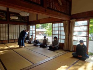 今年も札所8番西善寺の座禅体験に行ってきました。初めて訪れる学生がほとんどで、樹齢約600年の大きくて立派なコミネカエデに見入っていました。穏やかな光が入る部屋で風を感じ、虫の音を聞きながら自分と向き合う時間を過ごしました。