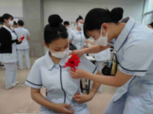 11月7日に、2・3年生の先輩方や先生方、家族、ご来賓の方々に見守られながら、戴帽式を挙行して頂きました。