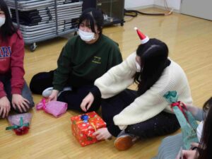 3年生は4月から続いていた実習が無事終了し、看護師国家試験に向けてラストスパートの時期ですが、少しだけ気分転換も兼ねてクリスマスパーティーを行いました。お弁当やケーキを食べたり、100円以内のプレゼント交換、3年生と担当教員でウノをしたり楽しい時間を過ごしました。
